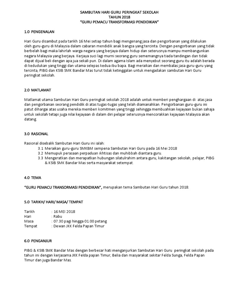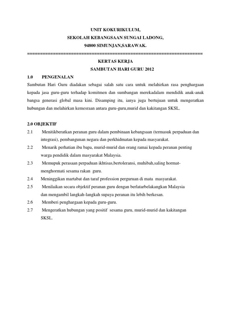 Doc Kertas Kerja Sambutan Hari Guru Peringkat Sekolah Sekolah Kebangsaan Sri Aman Usu Nor Academia Edu