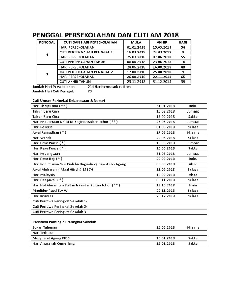 Penggal Persekolahan Dan Cuti Cuti Am Pendidik2u