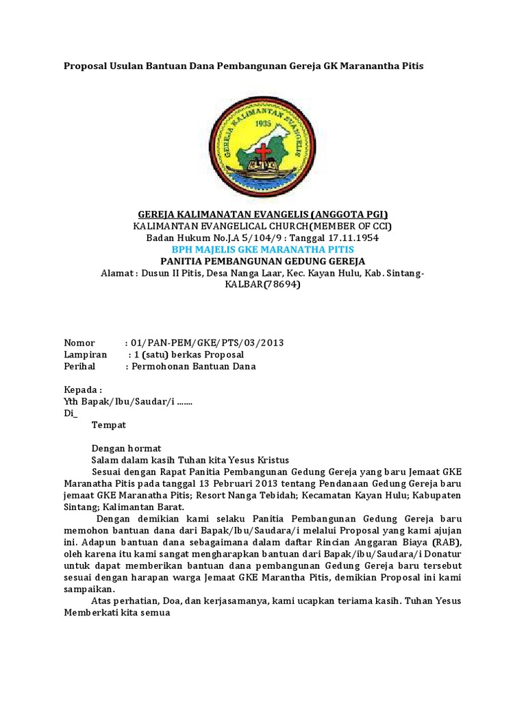 Proposal Usulan Bantuan Dana Pembangunan Gereja Gk Maranantha Pitis Docx