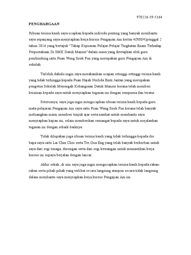 Contoh Penghargaan Kerja Kursus Pengajian Am