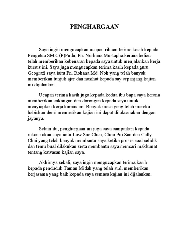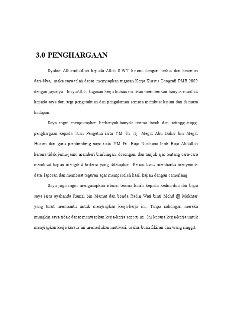 Contoh Penulisan Penghargaan Kerja Kursus Geografi 2013 Nur Amirah Academia Edu