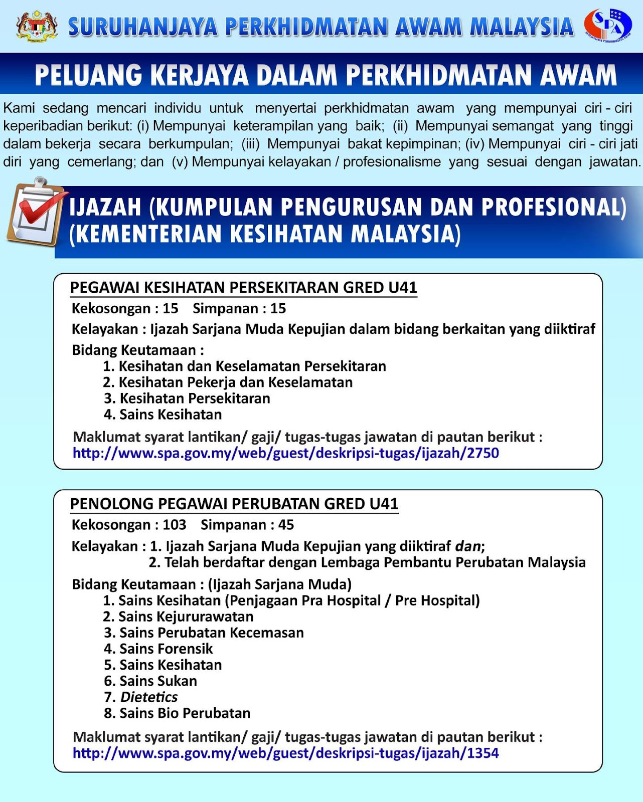 Permohonan Jawatan Penolong Pegawai Kesihatan Persekitaran Gred U29 Dengan Sijil Stp Stpm Diploma Stam Dan Hsc Kerja Kosong Kerajaan
