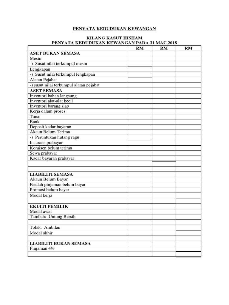 Contoh Penyata Kewangan Senang Diikuti Update 2020