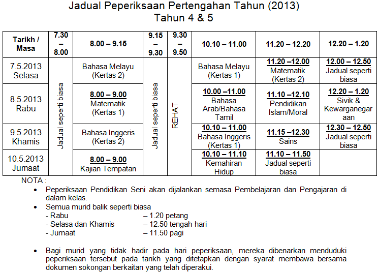 Jadual Peperiksaan Pertengahan Tahun Mei 2016 Laman Rasmi Smk Damai Jaya