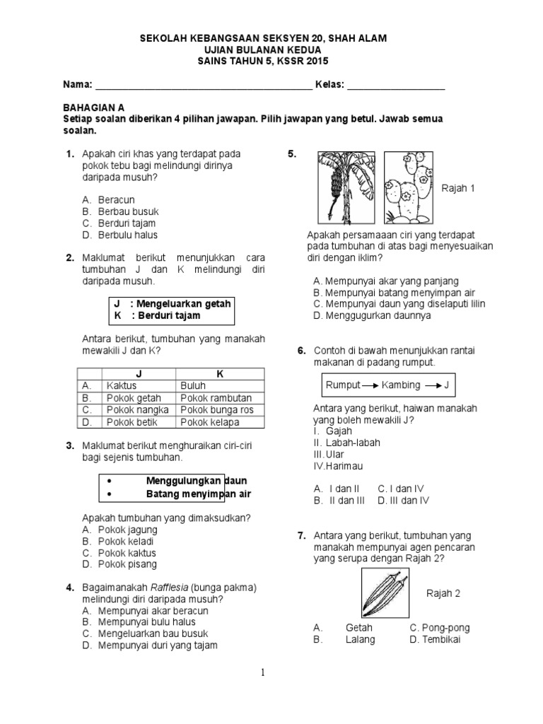 Soalan Sains Tahun 5 Kssr Ujian 1 Terengganu Q