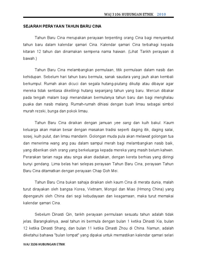 Sambutan Tahun Baru Cina Docx Sambutan Tahun Baru Cina Pendahuluan Di Malaysia Perayaan Ini Dirayakan Oleh Kaum Cina Kebiasaanya Ia Disambut Pada Course Hero