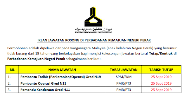Jawatan Kosong Di Perbadanan Kemajuan Negeri Perak Kelayakan Pmr Spm Ejawatankini Com