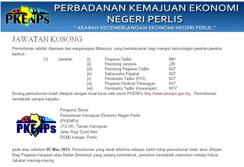 Jawatan Kosong Di Perbadanan Kemajuan Ekonomi Negeri Perlis Jobcari Com Jawatan Kosong Terkini