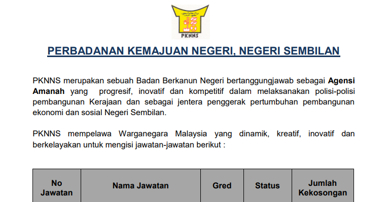 Kerja Kosong Di Perbadanan Kemajuan Negeri Negeri Sembilan Pknns Gkerja My