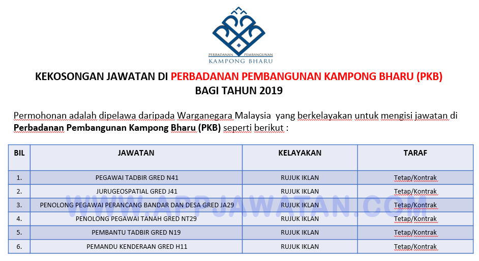 Jawatan Kosong Di Perbadanan Pembangunan Kampong Bharu Pkb Jobcari Com Jawatan Kosong Terkini