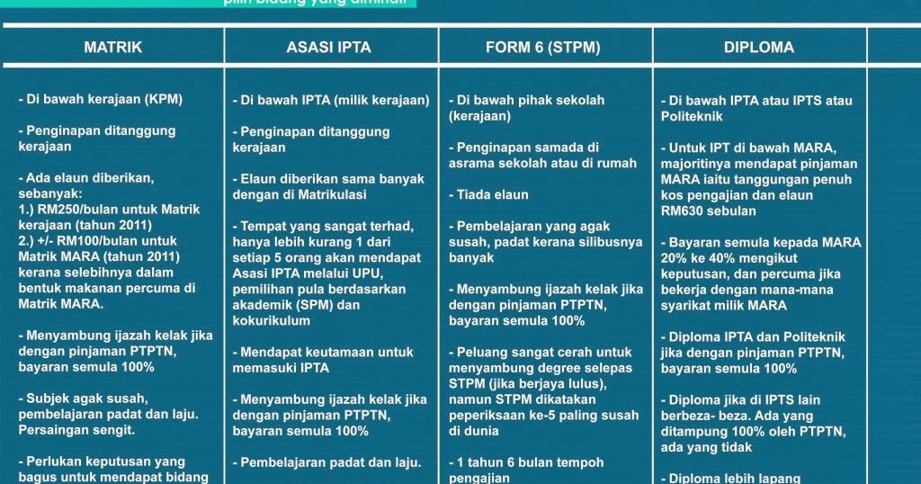 Apa Beza Stpm Asasi Diploma Dan Matrikulasi Made In Uitm