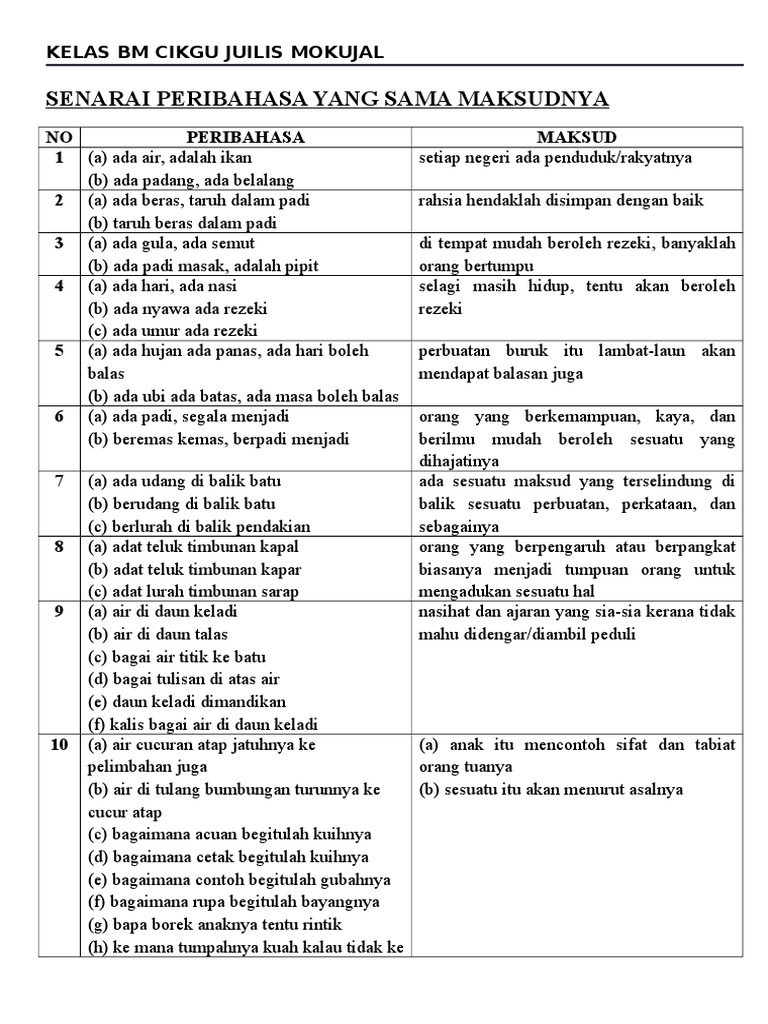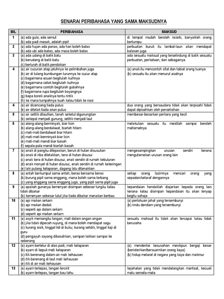 Senarai Peribahasa Yang Sama Maksudnya Kelas Bm Cikgu Juilis Mokujal