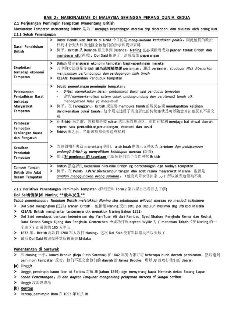 19287803 Nota Sejarah Tingkatan 5 Bab 2 Nasionalisme Di Malaysia Sehingga Perang Dunia Kedua Pdf Document