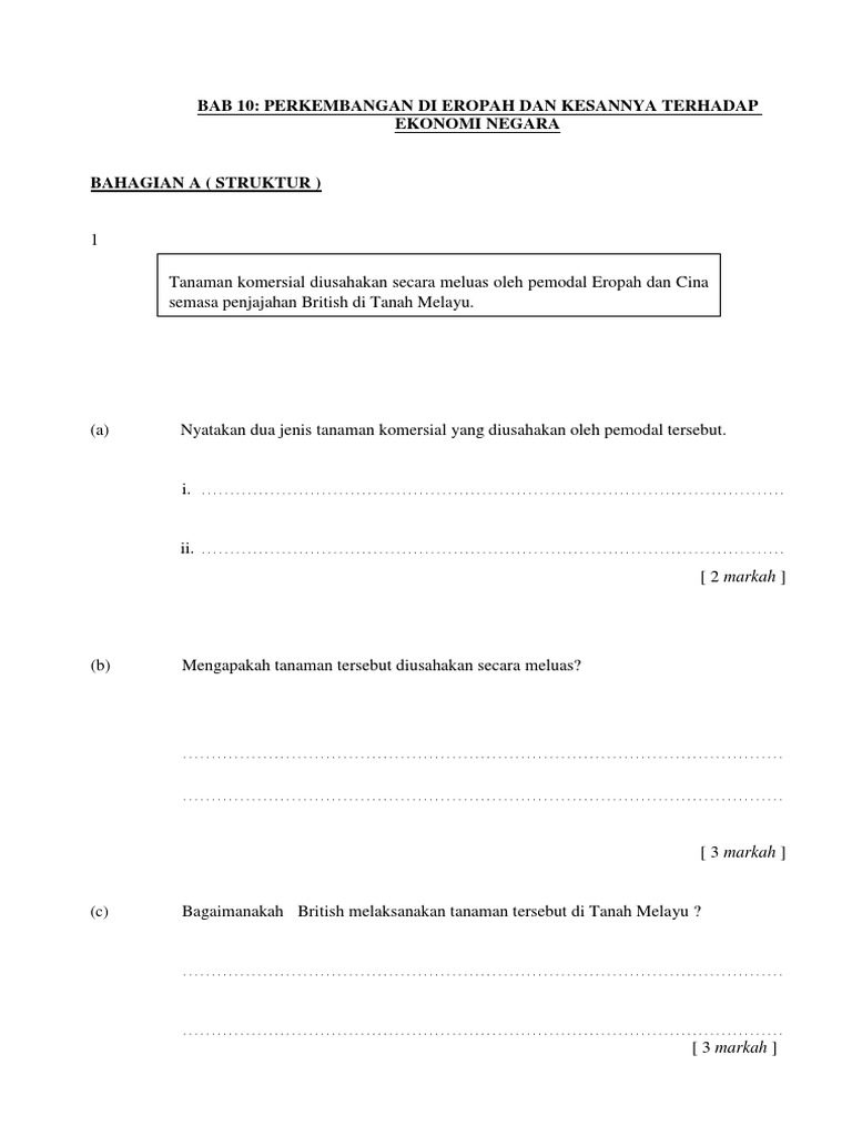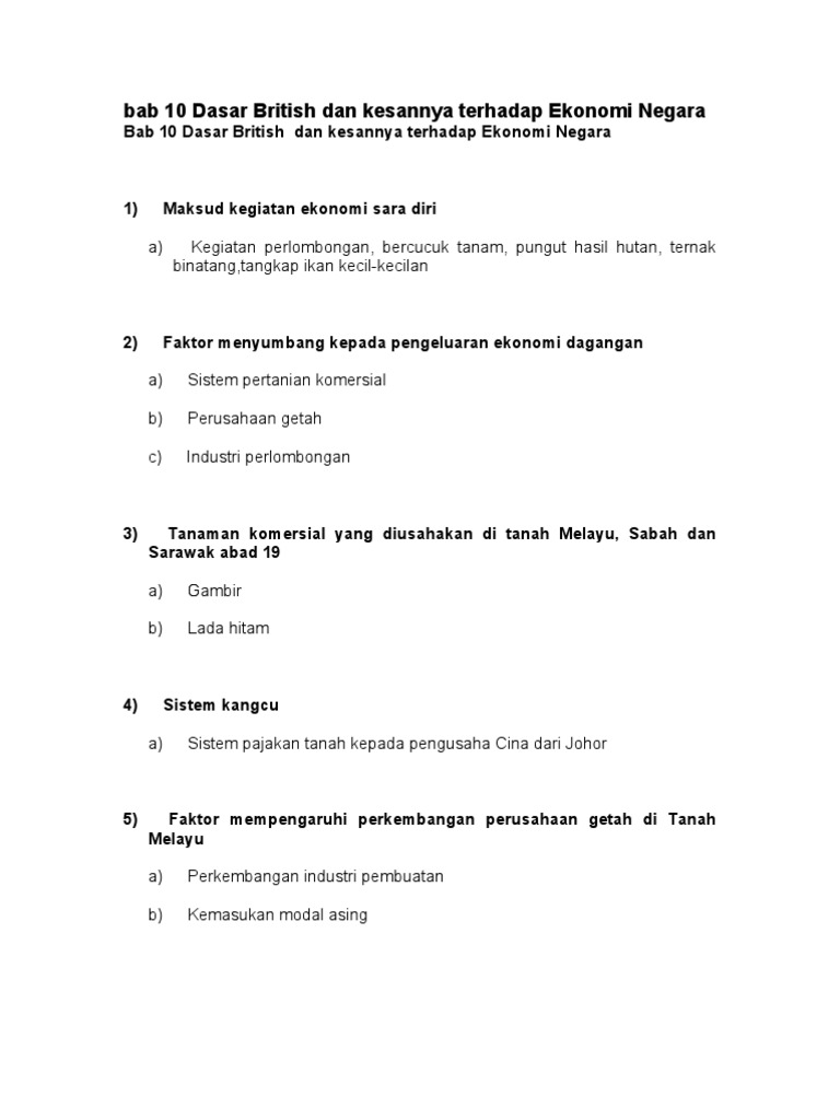 Pdf Soalan Struktur Bab 10 Dasar British Dan Kesannya Terhadap Ekonomi Negara Kumpulan 10 Mohd Zainal Mat Isa Academia Edu