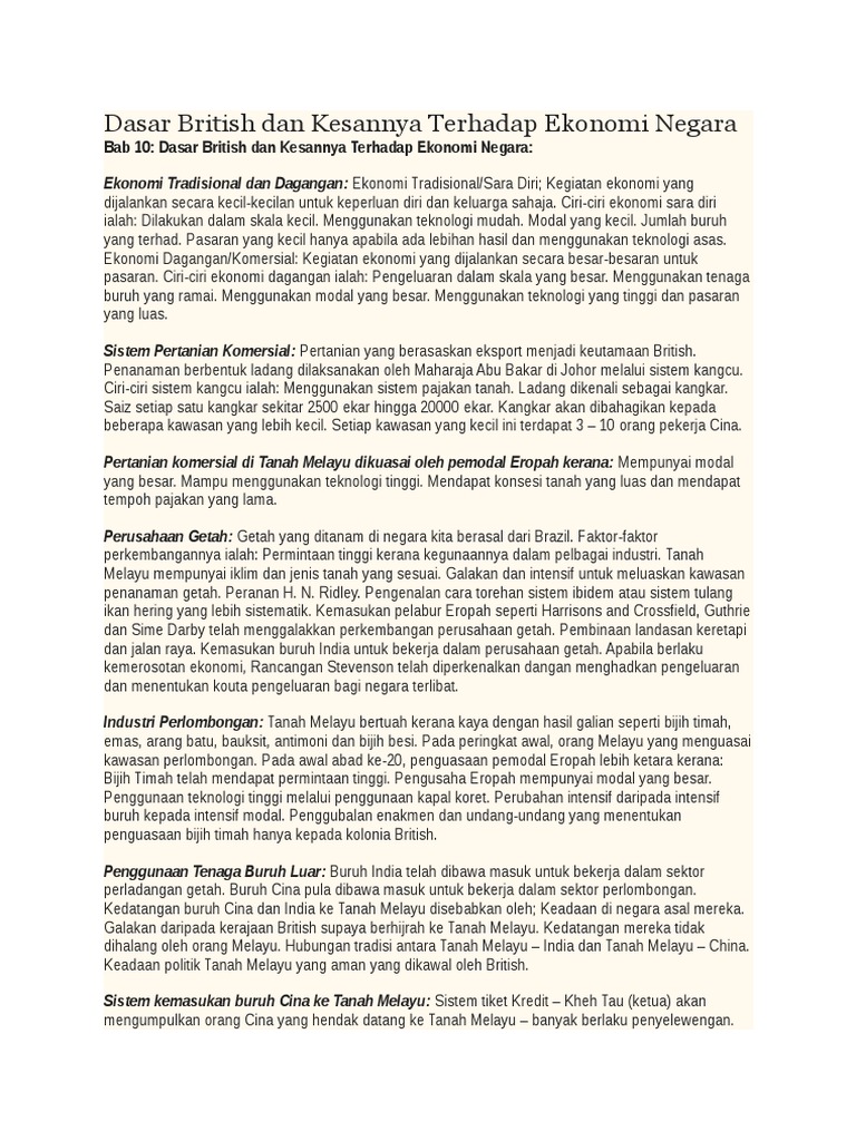 Ting 4 Bab 10 Dasar British Dan Kesannya Terhadap Ekonomi Negara