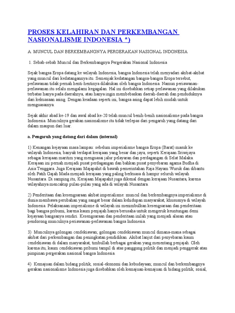 Doc Proses Kelahiran Dan Perkembangan Nasionalisme Indonesia Dermawan Jaya Academia Edu