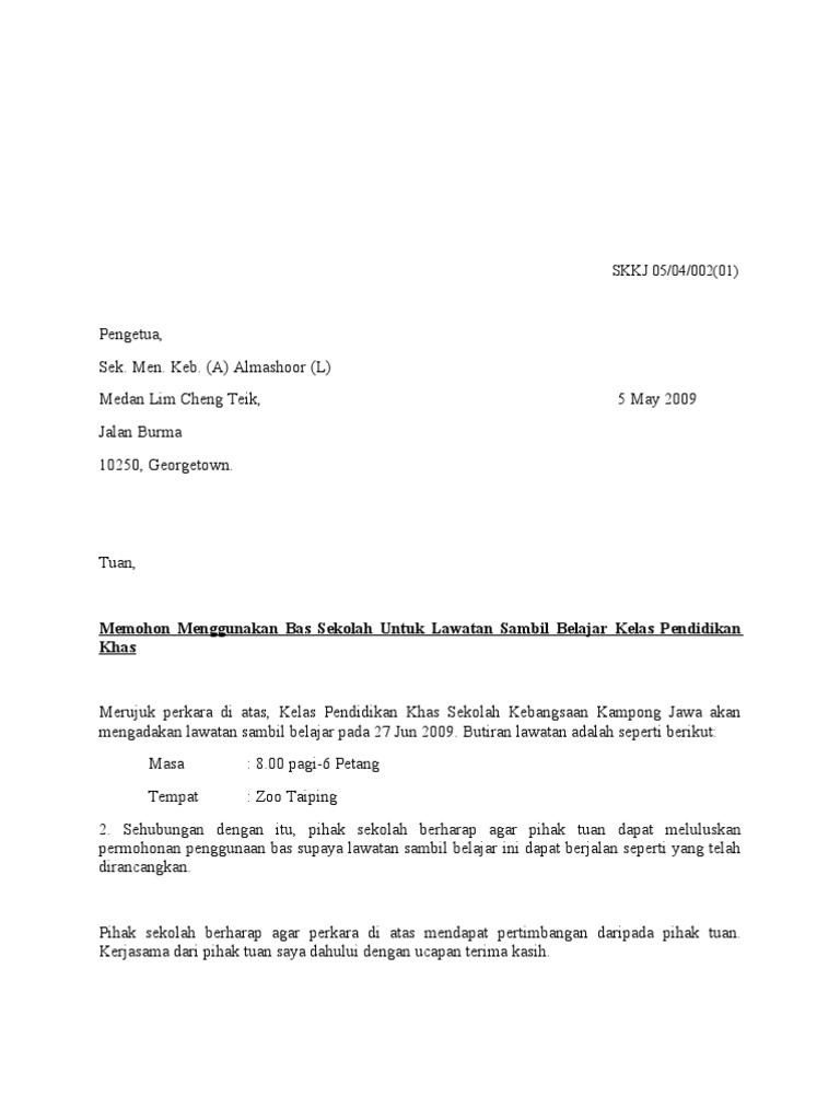 Contoh Surat Rasmi Permohonan Aktiviti Kelab Dan Persatuan Bahasa Melayu