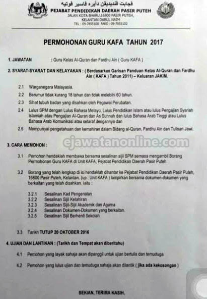 Jawatan Kosong Terkini Sebagai Guru Kafa 20 Oktober 2016 Isketambola Isketambola