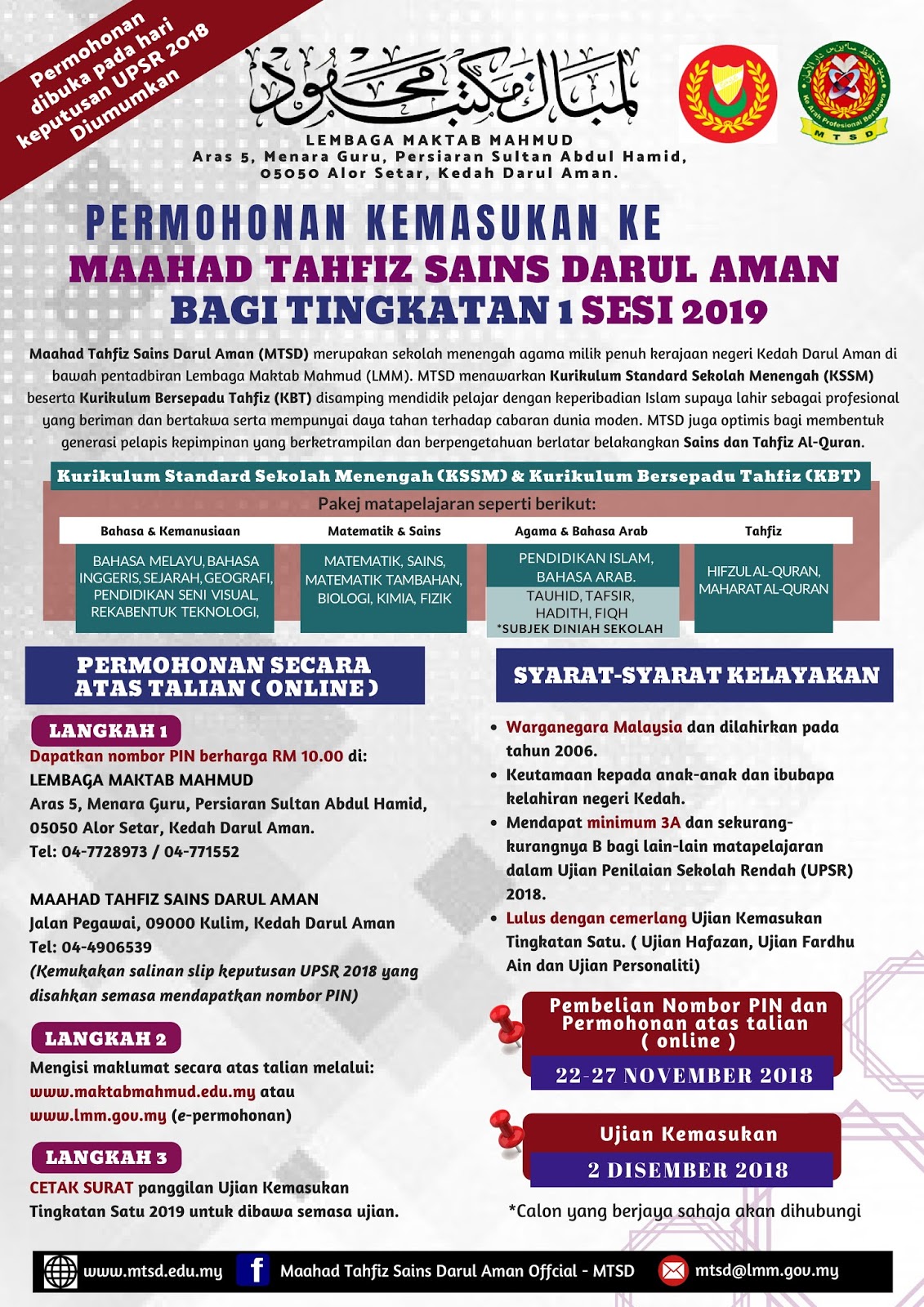 Permohonan Kemasukan Ke Maahad Tahfiz Sains Darul Aman Mtsd 2020 Online My Panduan