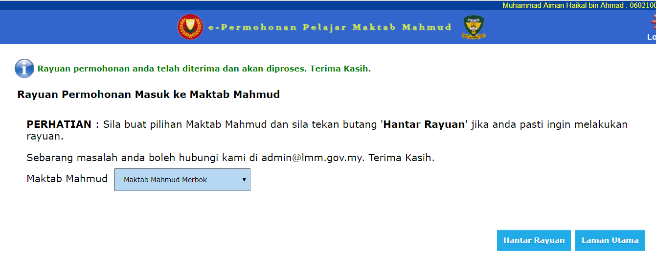 Tatacara Membuat Rayuan Secara Online Maktab Mahmud Khatyaiman