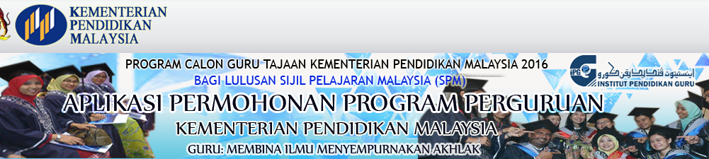 Kementerian pendidikan malaysia kpm mempelawa kepada calon yang memiliki sijil pelajaran malaysia spm mengikuti program pengajian ijazah sarjana muda perguruan pismp di maktab perguruan seluruh malaysia. Permohonan online maktab perguruan 2016 bagi memasuki ipg program ijazah sarjana muda perguruan.