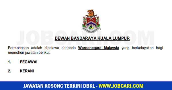 Jawatan Kosong Terkini Di Dbkl Jawatan Kerani Pegawai Jobcari Com Jawatan Kosong Terkini