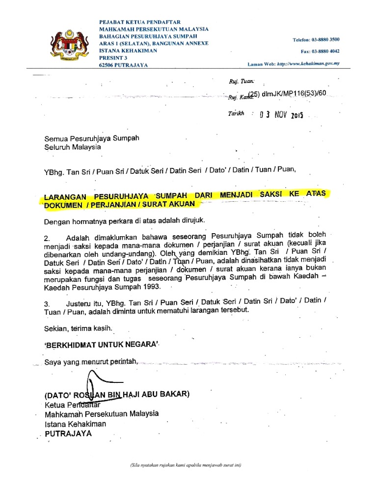 Pesuruhjaya Sumpah Portal Rasmi Pejabat Ketua Pendaftar Mahkamah Persekutuan Malaysia