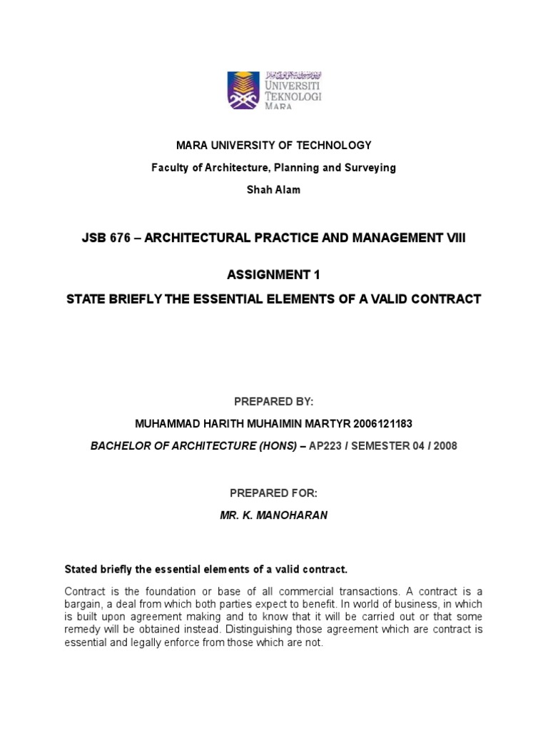 Tutorial 3 Contract Unl1612 Mmu Studocu