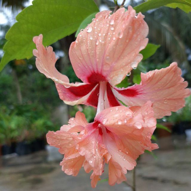 Peach Hybrid Bloom Hibiscus Double Petal Vermillion Flower Shopee Malaysia
