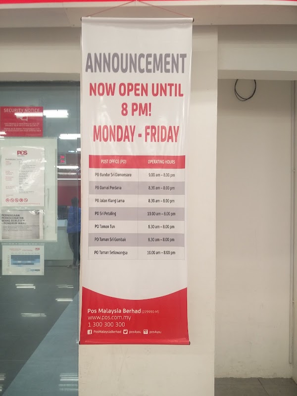 This opening hours do not apply to post office that are located at shopping complex. Pos malaysia kuala lumpur location pos malaysia kuala lumpur address pos malaysia kuala lumpur endah parade pos malaysia kuala lumpur pejabat pos sri petaling kuala lumpur pos malaysia kuala lumpur pos malaysia carefour seri petaling kuala lumpur pos malaysia carrefour sri petaling kuala lumpur pos office endah. Specialize in kurier e commerce and express. It also close on every first saturday of the month.