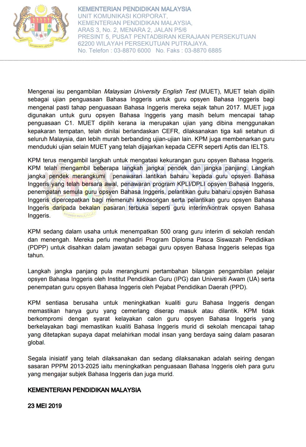 Kpm On Twitter Kenyataan Media Rasmi Kementerian Pendidikan Malaysia Berkaitan Kpm Mengambil Inisiatif Berterusan Bagi Meningkatkan Kualiti Penguasaan Bahasa Inggeris Dalam Kalangan Guru Opsyen Bahasa Inggeris Chedetofficial Drwanazizah Maszlee