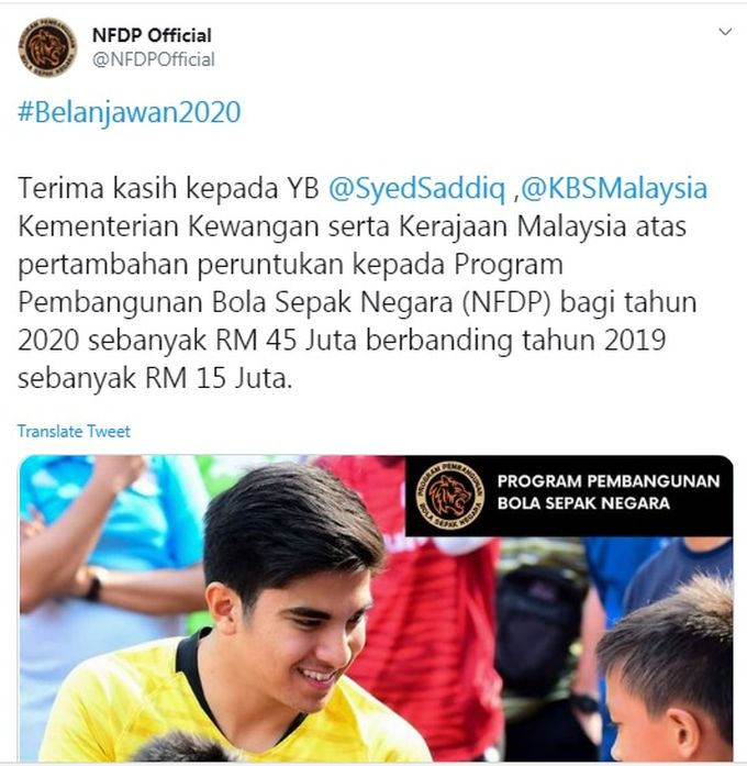 Belanjawan 2020 Rm45 Juta Diperuntukkan Untuk Program Pembangunan Bola Sepak Negara