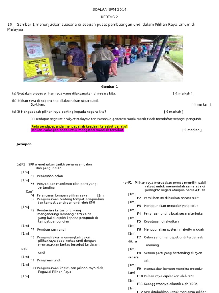 Soalan Spm 2014 Kertas 2 10 Gambar 1 Menunjukkan Suasana Di Sebuah Pusat Pembuangan Undi Dalam Pilihan Raya Umum Di Malaysia