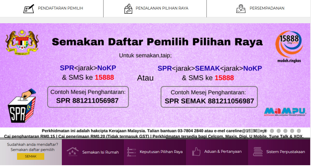 03 88927018 fax. Kerajaan malaysia suruhanjaya pilihan raya malaysia dan pejabat pilihan raya negeri kedah tidak bertanggungjawab terhadap sebarang kehilangan atau kerosakan yang dialami kerana menggunakan maklumat dalam laman ini. Hak cipta terpelihara 2018 suruhanjaya pilihan raya malaysia tel. Sila pilih kriteria pilihan raya berikut.