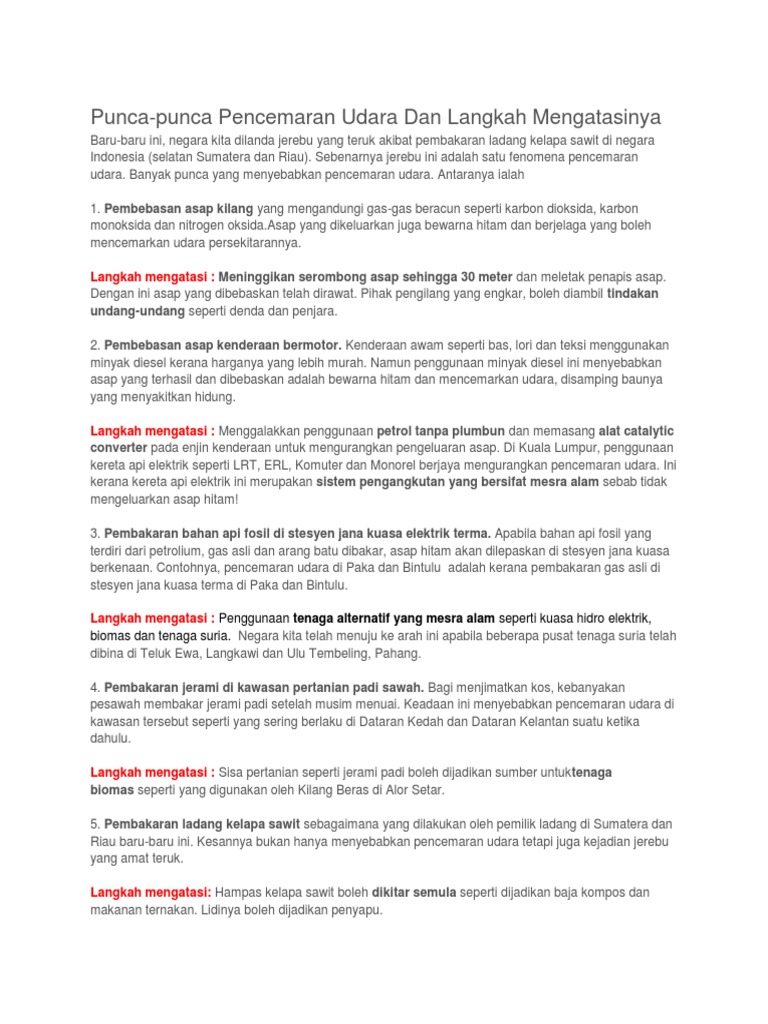 Punca Punca Pencemaran Udara Pdf Document