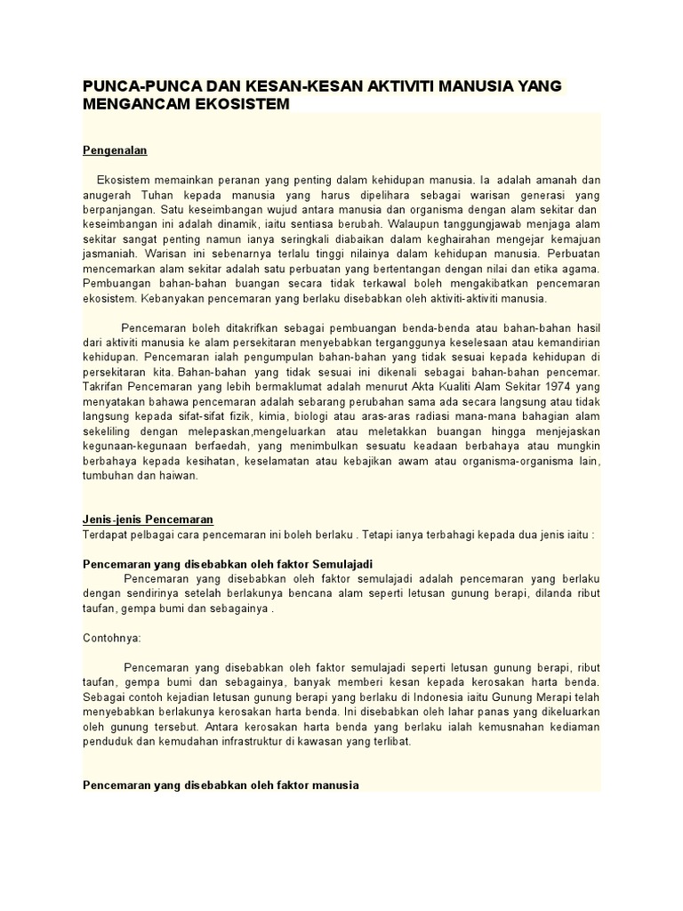 1 Aktiviti Manusia Yang Tidak Terancang Dan Tidak A Akta Kualiti Alam Sekitar 1974 1985 B Pdf Document