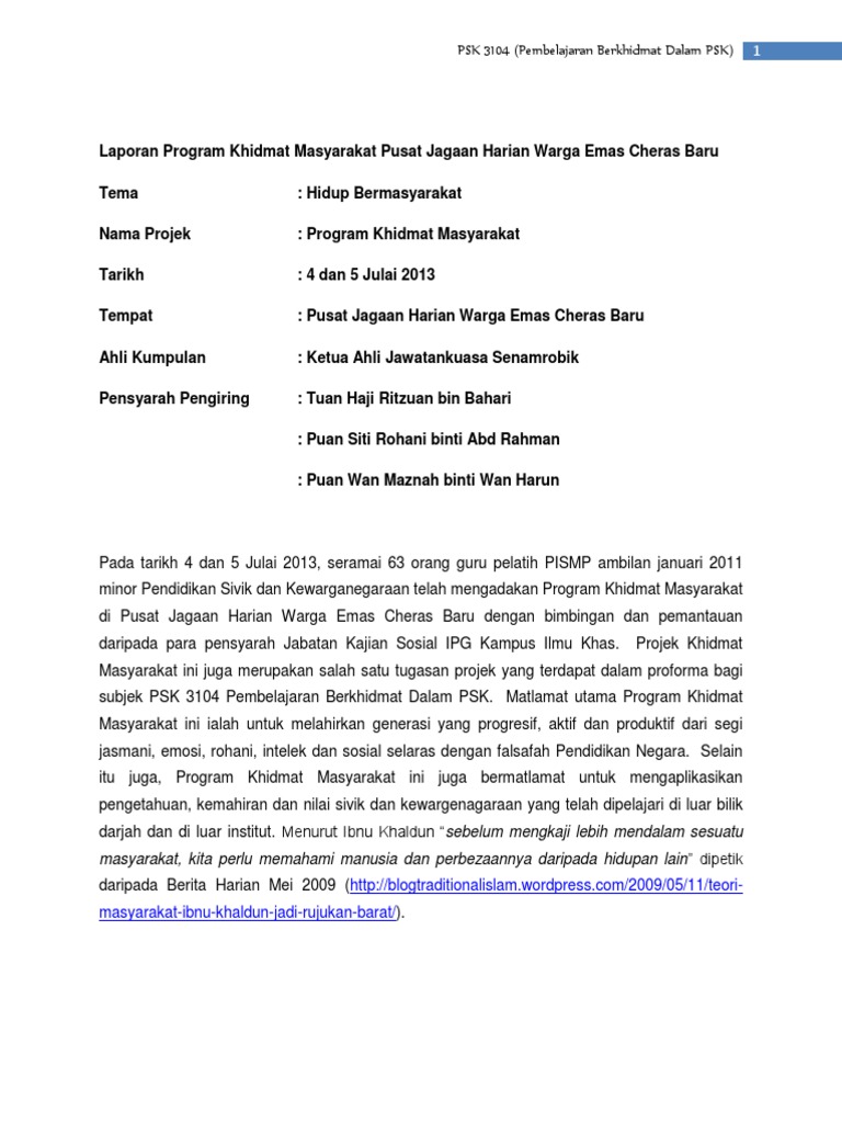 Laporan Program Khidmat Masyarakat Pusat Jagaan Harian Warga Emas Cheras Baru Docx