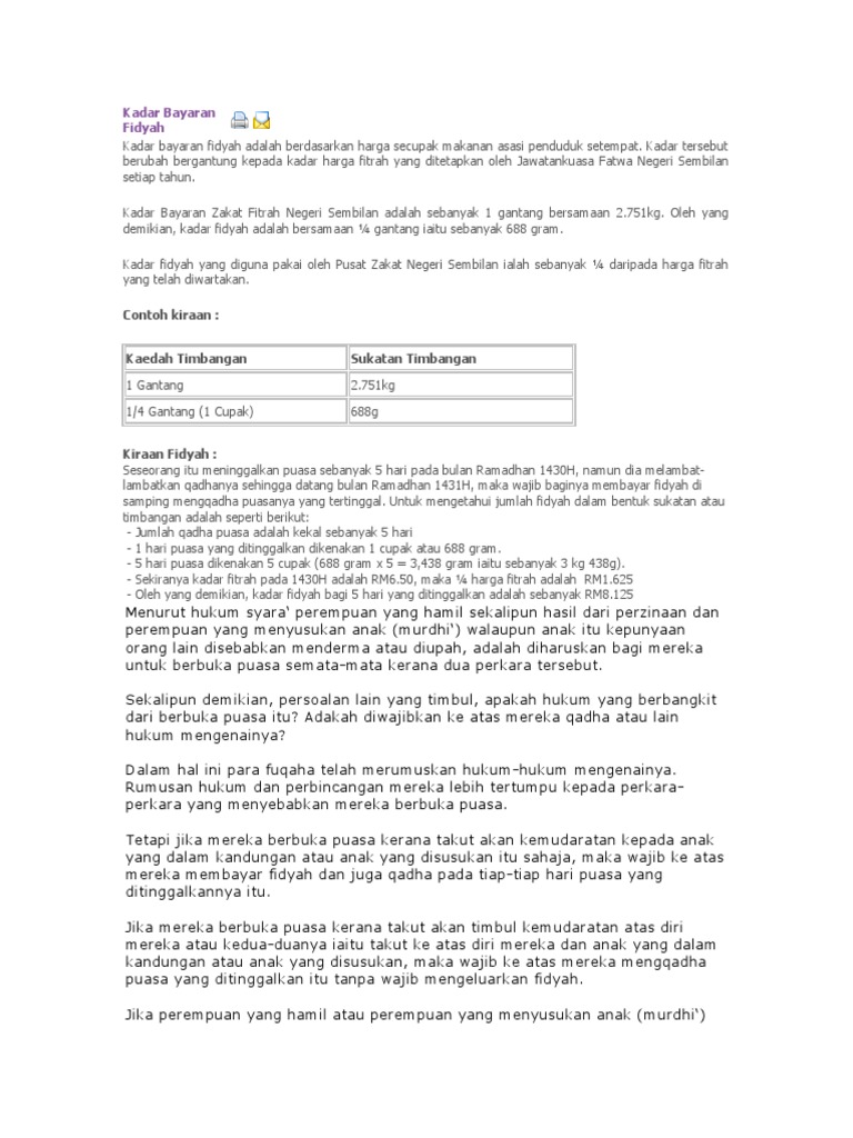 Kadar Fidyah Keputusan Mesyuarat Jabatan Mufti Kerajaan Negeri Negeri Sembilan Facebook