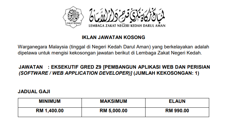 Jawatan Kosong Di Lembaga Zakat Negeri Kedah Jobcari Com Jawatan Kosong Terkini