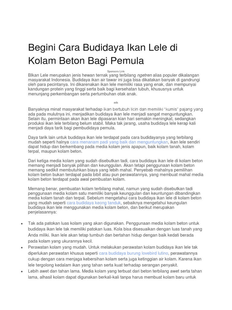 Begini Cara Budidaya Ikan Lele Di Kolam Beton Bagi Pemula Cara Menanam Padi Yang Baik Dan Menguntungkan