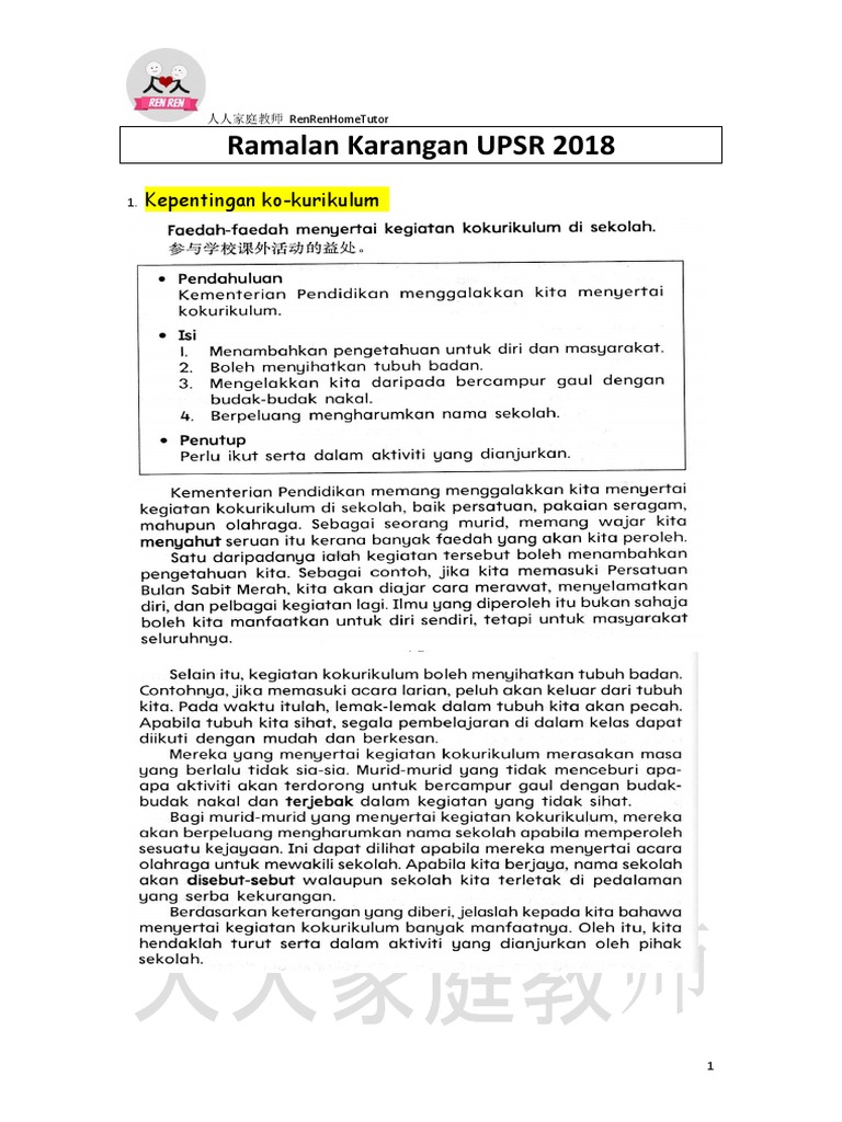 Ramalan Karangan Upsr 2018 Kepentingan Ko Kurikulum