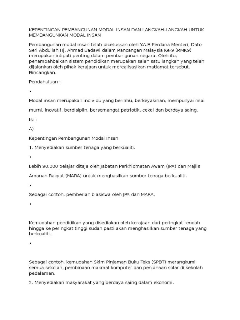 Kepentingan Pembangunan Modal Insan Dan Langkah