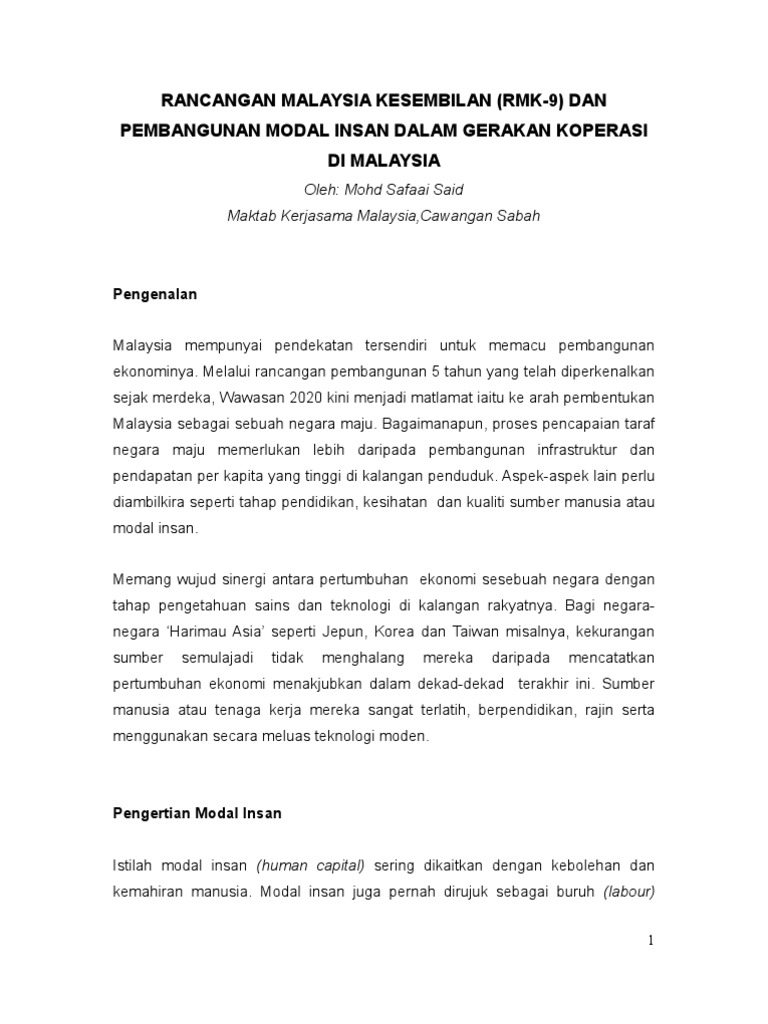 Pembangunan Modal Insan Penjana Wawasan 2020 Pdf Document