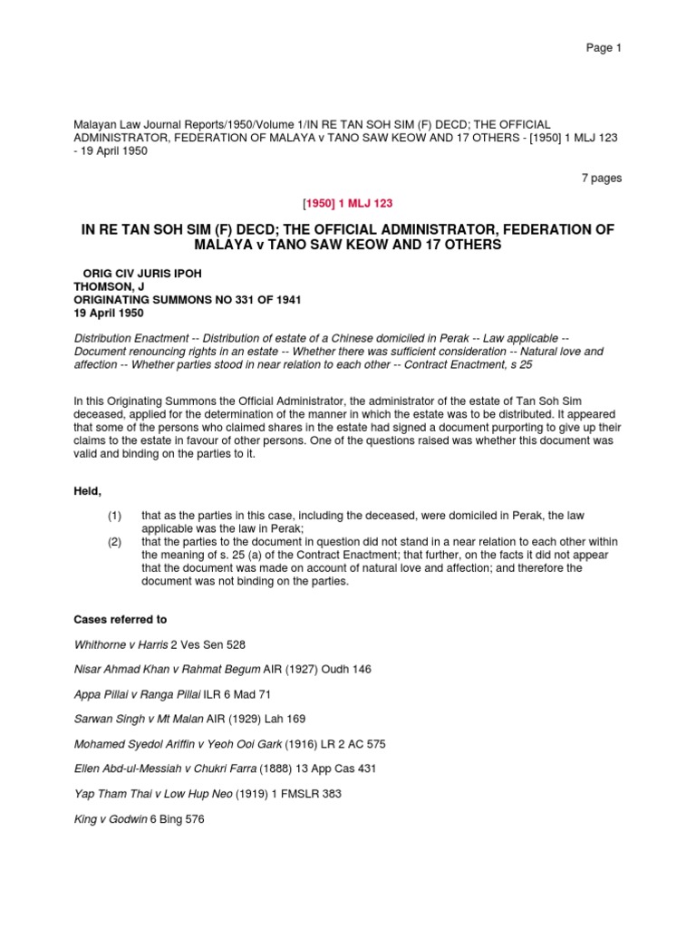 In Re Tan Soh Sim F Decd The Official Adm Domicile Law Natural And Legal Rights