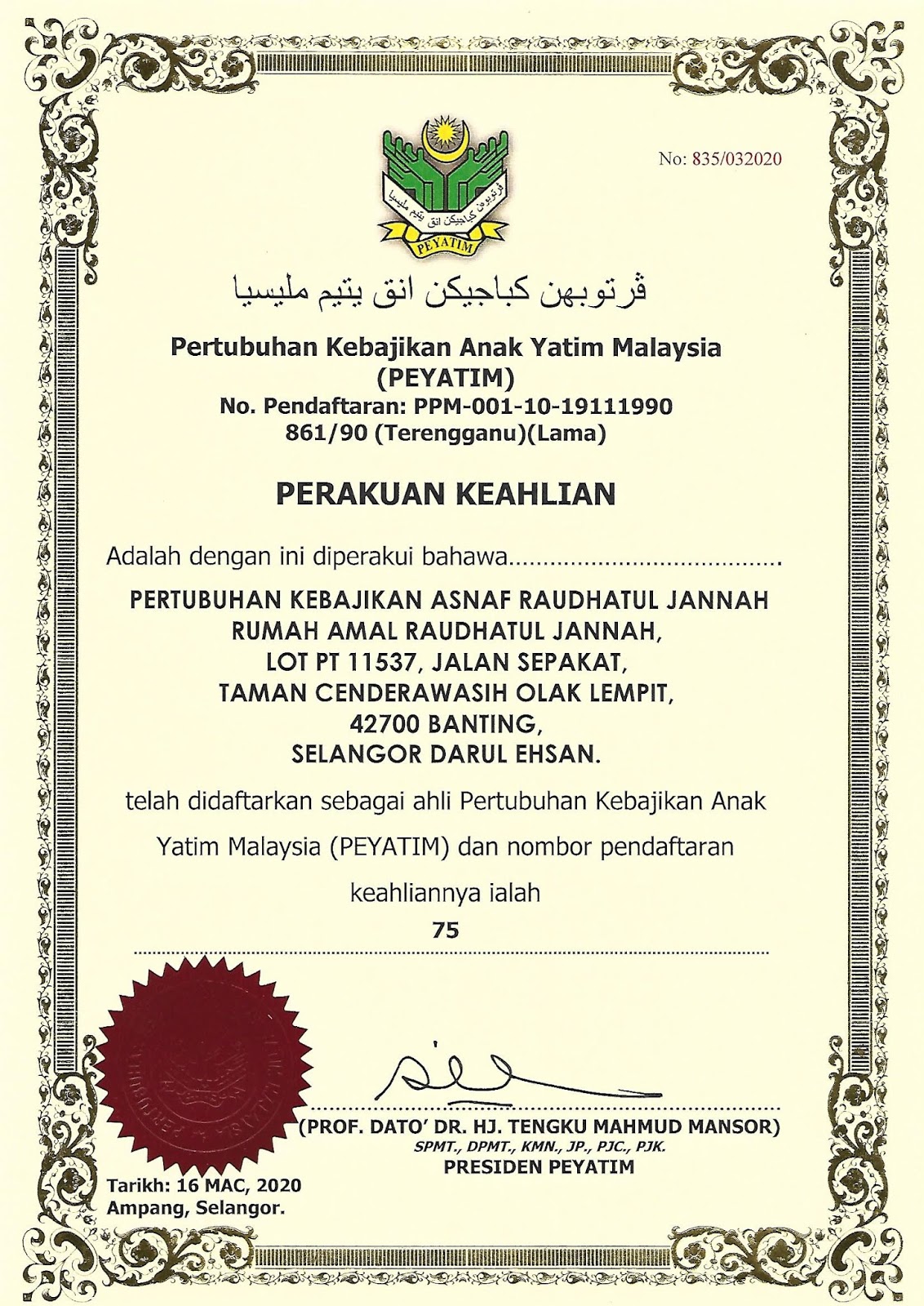 Rumah Amal Raudhatul Jannah Pertubuhan Kebajikan Anak Yatim Malaysia Peyatim