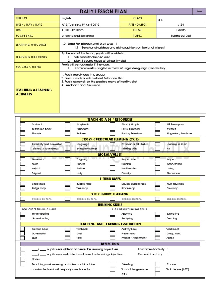 Daily Lesson Plan Teaching Learning Activities Educational Technology Change