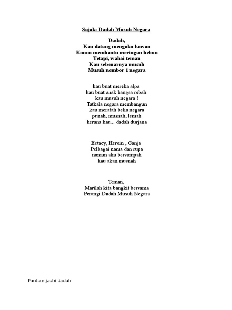 Sajak Keluarga Bahagia Tanpa Dadah