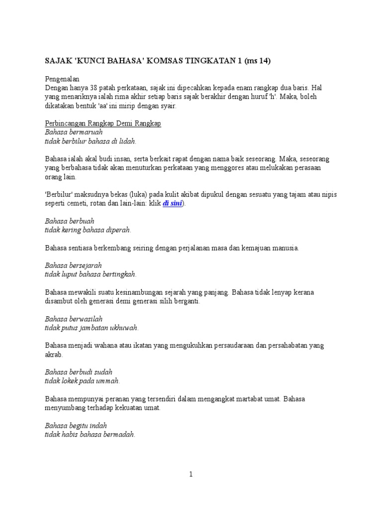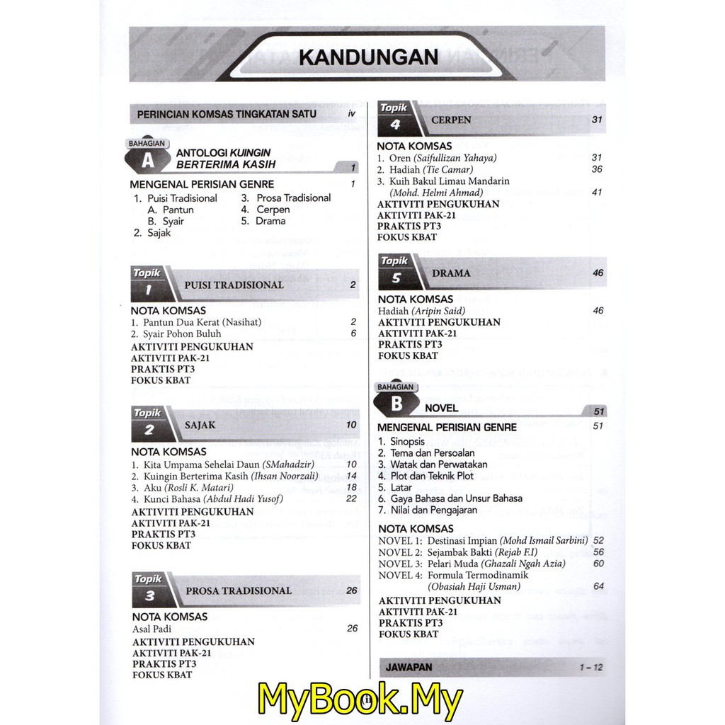 Tingkatan 1 Bahasa Melayu Komsas Kunci Bahasa Youtube