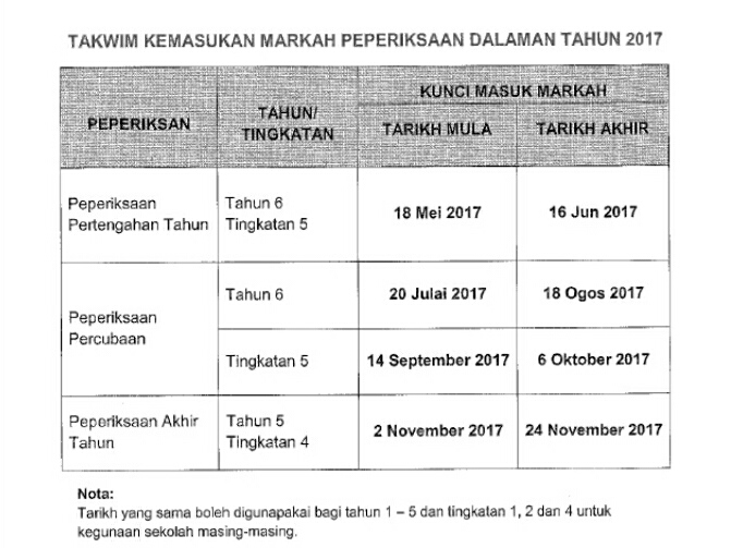 Takwim Tarikh Kemasukan Markah Peperiksaan Saps 2017 Mybelajar