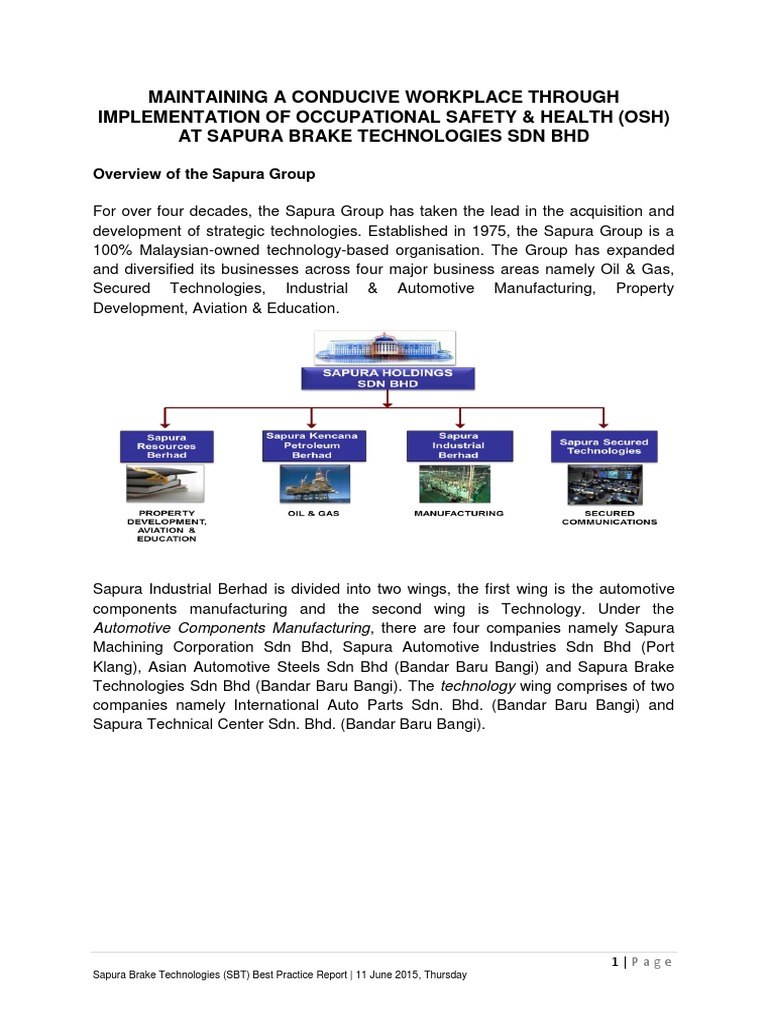 Sapura Group Pdf Occupational Safety And Health Technology